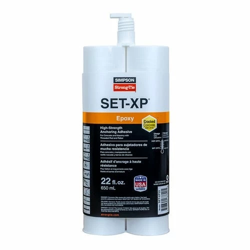 SET-XP epoxy anchoring adhesive is a high-strength formula for anchoring and doweling in cracked and uncracked concrete and masonry applications. It is a two-part system with the resin and hardener being simultaneously dispensed and mixed through the mixing nozzle. When properly mixed; adhesive will be a uniform teal color for easy post-installation identification.